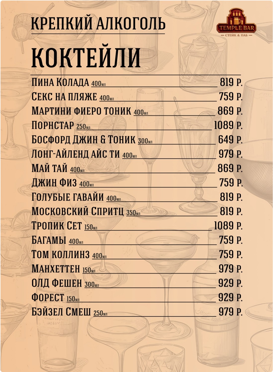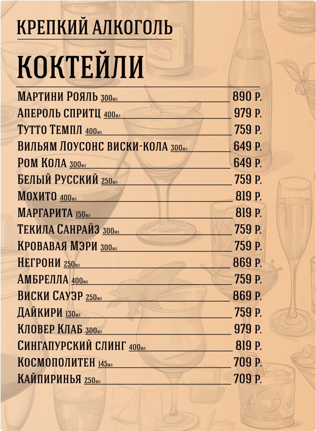 бармены - индивидуальную коктейльную карту,